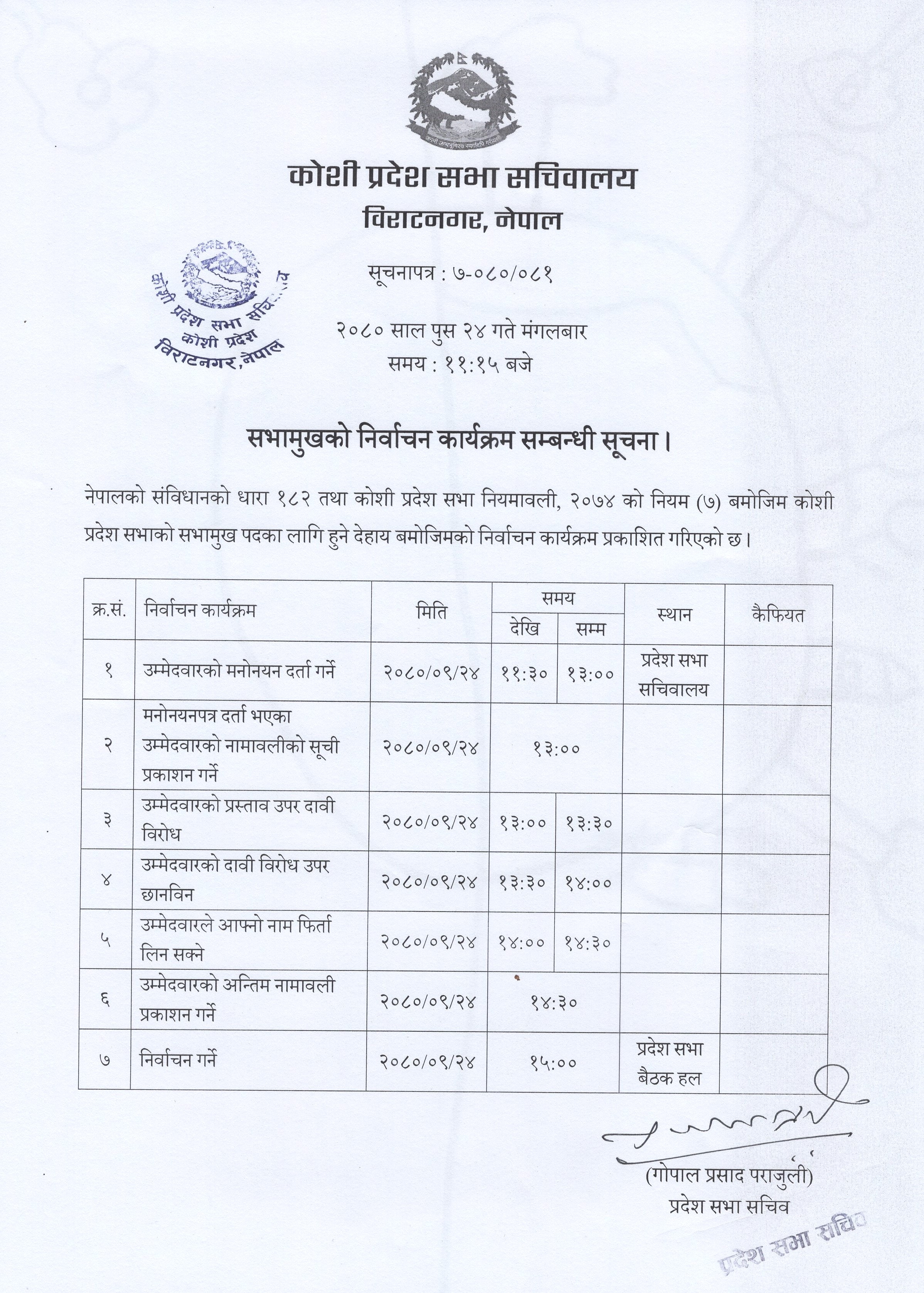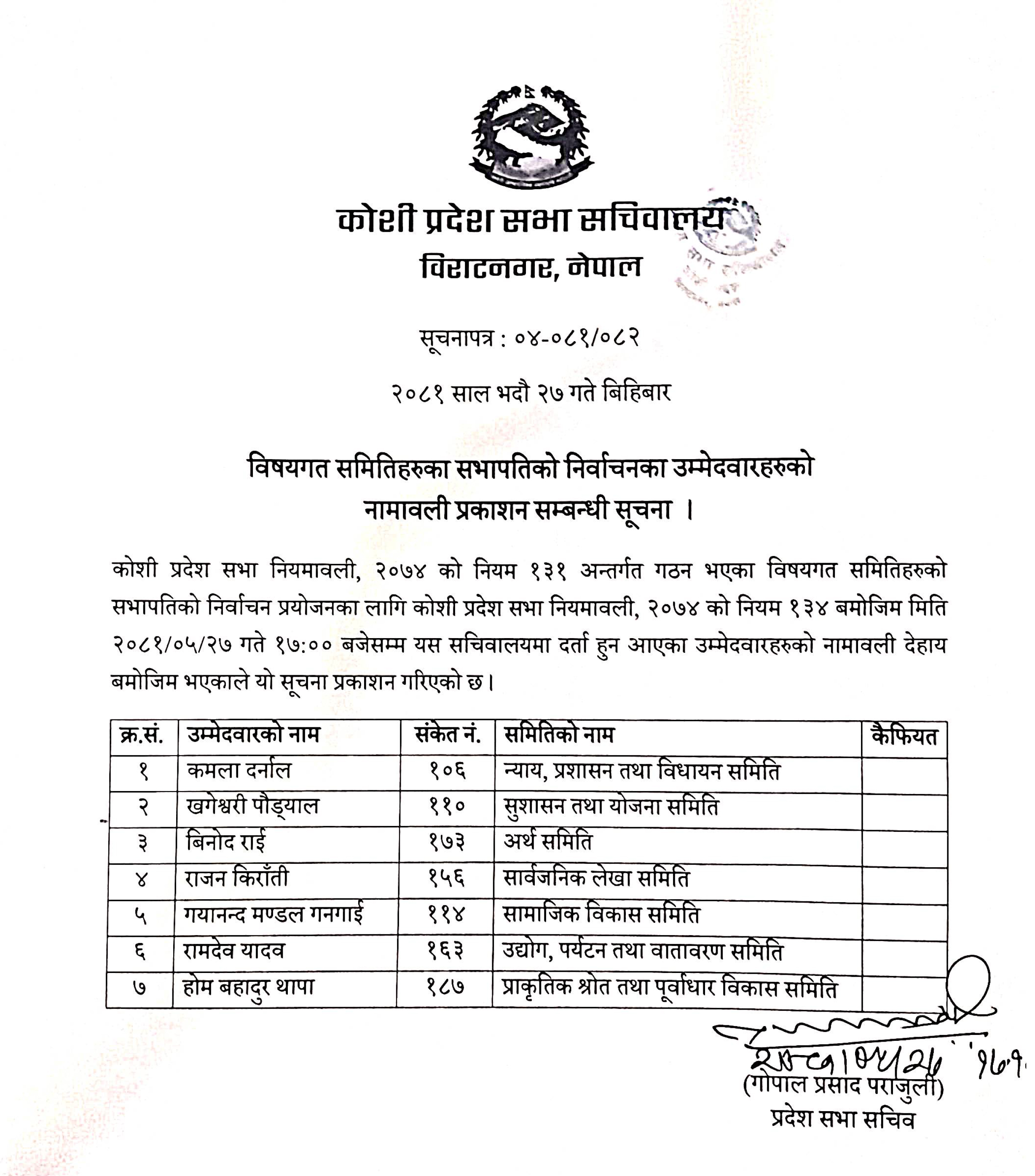 उम्मेदवारको अन्तिम नामावली प्रकाशन गरिएको सम्बन्धी सूचना ।